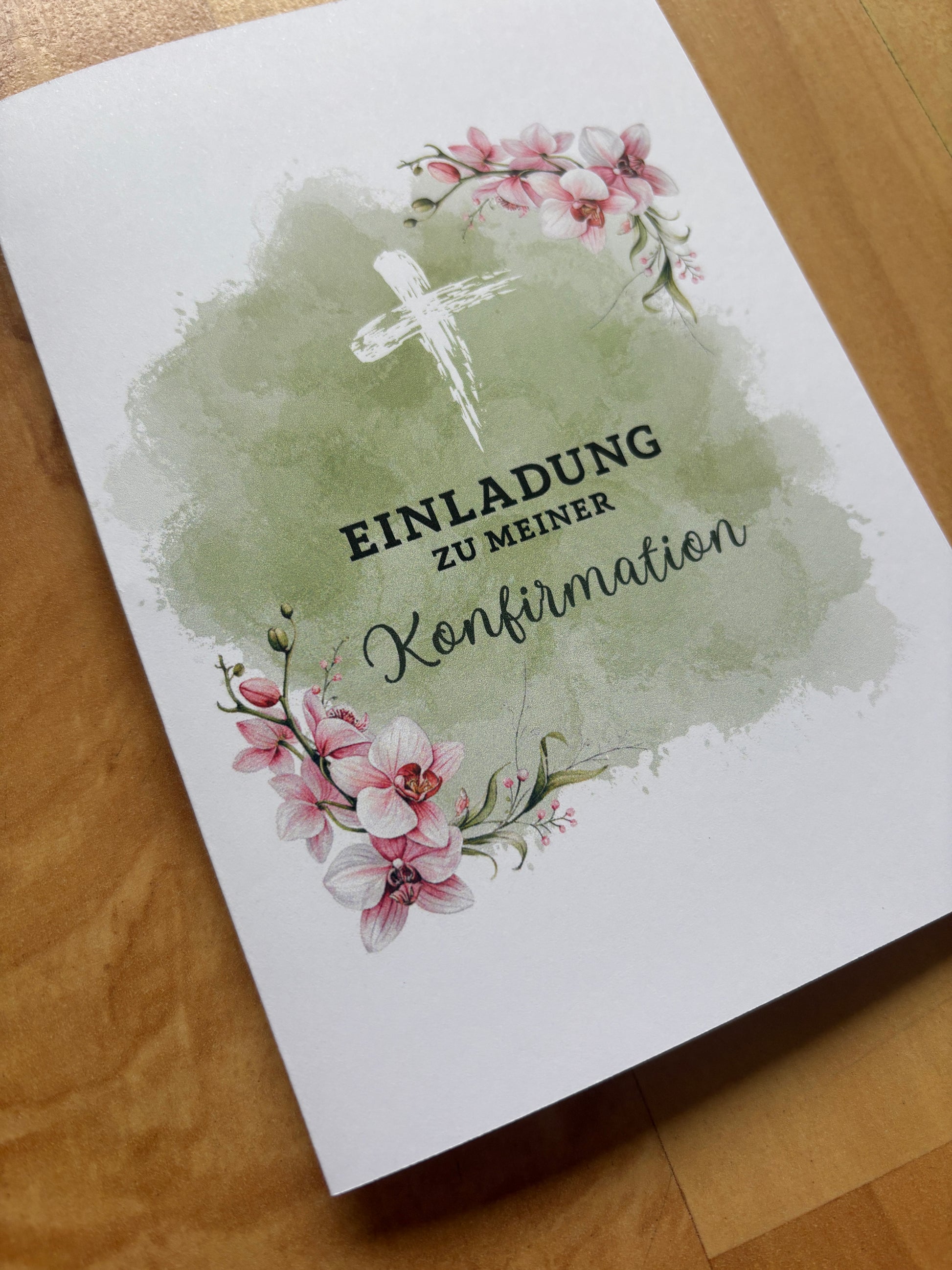 Personalisierte Einladungskarte zur Konfirmation | Kommunion, Firmung, Taufe & Jugendweihe | A5 Klappkarte | 300g Premiumkarton | 4 Farben
